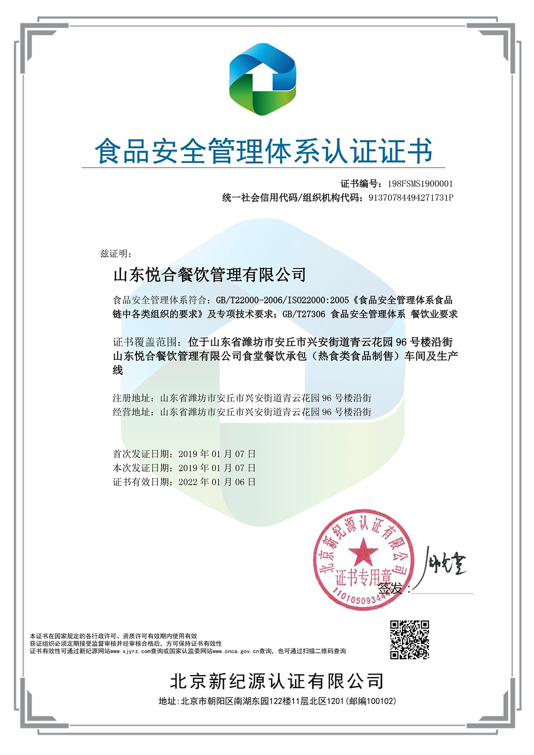 GB/T27306食品安全管理体系